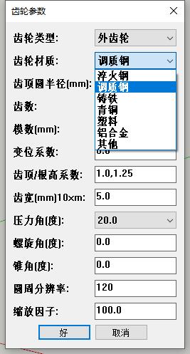 - 缩放因子:当齿轮太小时,你可以通过缩放因子来放大齿轮,使它在SketchUp软件中显示出来。